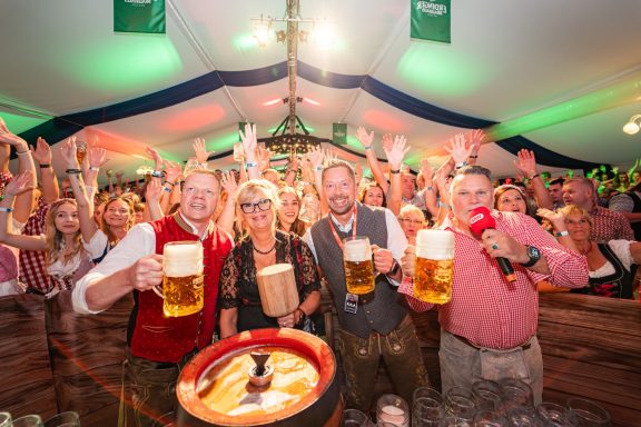 Ganz nach dem Vorbild des traditionellen Oktoberfest erwartet die Besucher echte Wiesn-Atmosphäre mit bayerischen Spezialitäten, frisch gezapftem Bier, zünftiger Musik und einem festlich dekorierten Festzelt.
